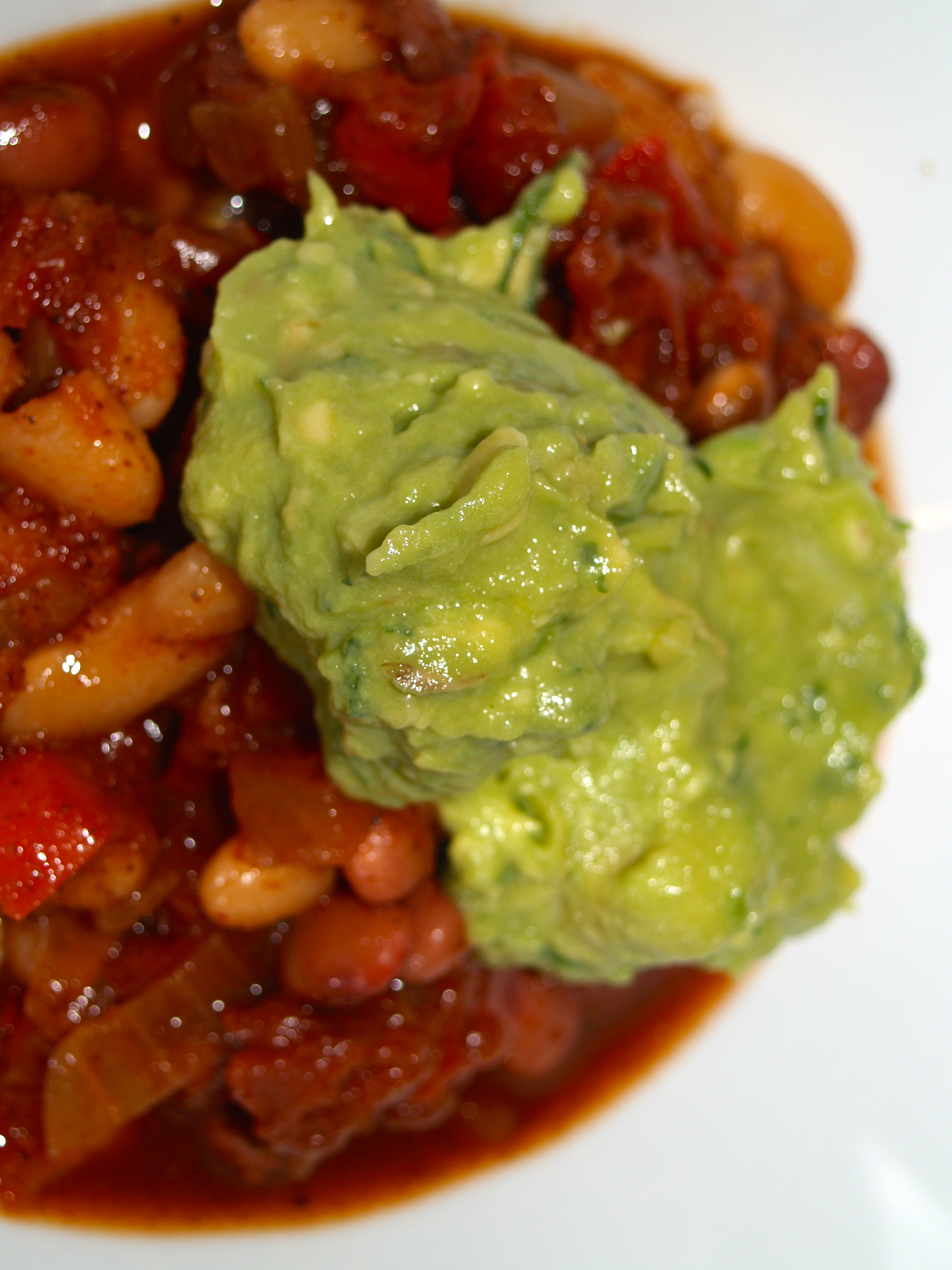 This lenten vegetarian chili with guacamole is an easy weeknight favorite and if you end up with leftovers – it tastes even better the day after!