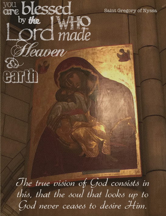 may the Lord increase you Leave a comment March 29, 2015 nourishinggrace You are blessed by the Lord who made heaven and earth Psalm 113: 23 “The true vision of God consists in this, that the soul that looks up to God never ceases to desire Him.” Saint Gregory of Nyssa Share this: Click to share on X (Opens in new window) X Click to share on Facebook (Opens in new window) Facebook Like Loading... Related