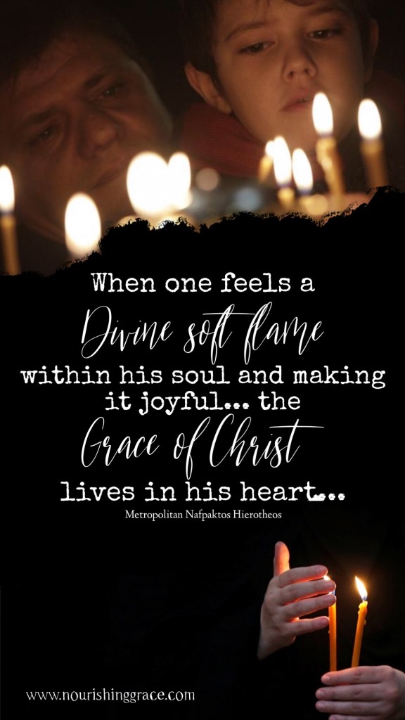 a divine soft flame Leave a comment August 19, 2019 nourishinggrace There are moments in life when you are not able to make a wish, because speech ceases and then you feel the need to express yourself only through prayers and blessings. Metropolitan Nafpaktos Hierotheos A Night in the Desert of the Holy Mountain Share this: Click to share on X (Opens in new window) X Click to share on Facebook (Opens in new window) Facebook Like Loading... Related